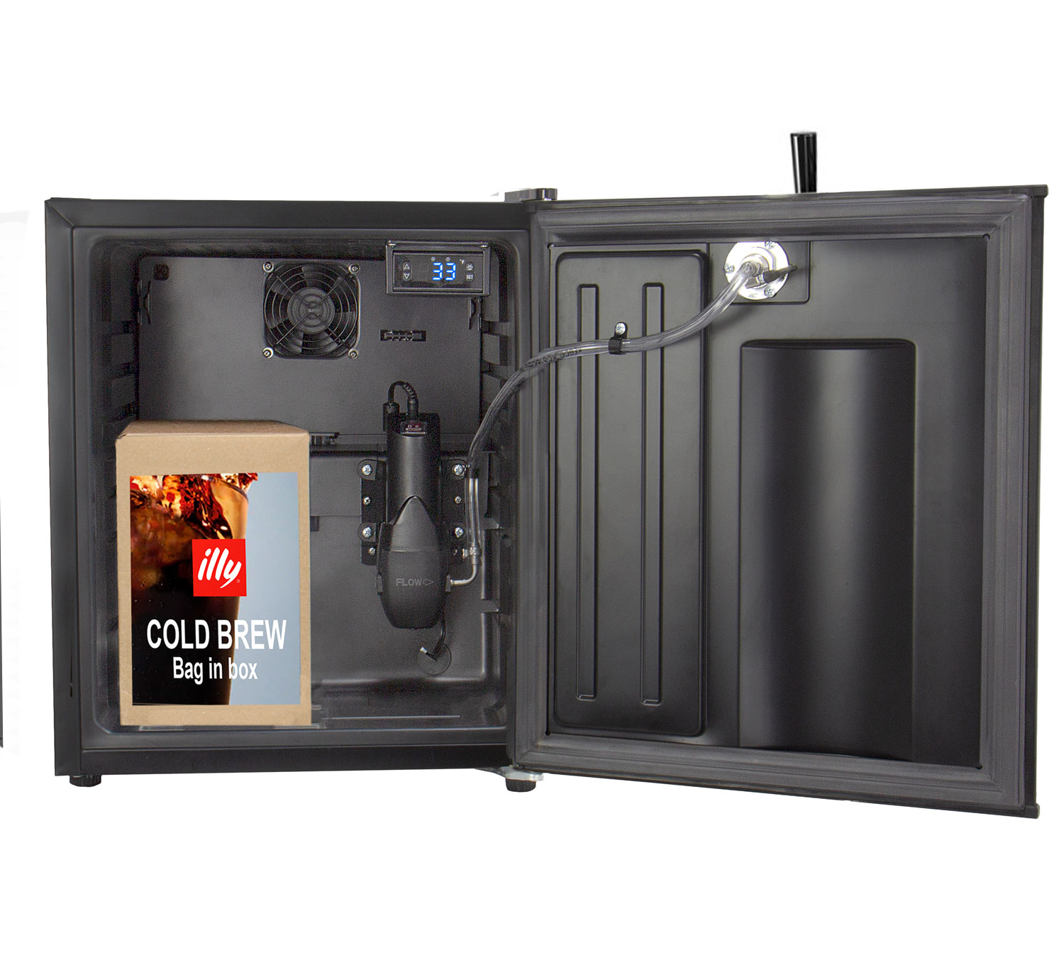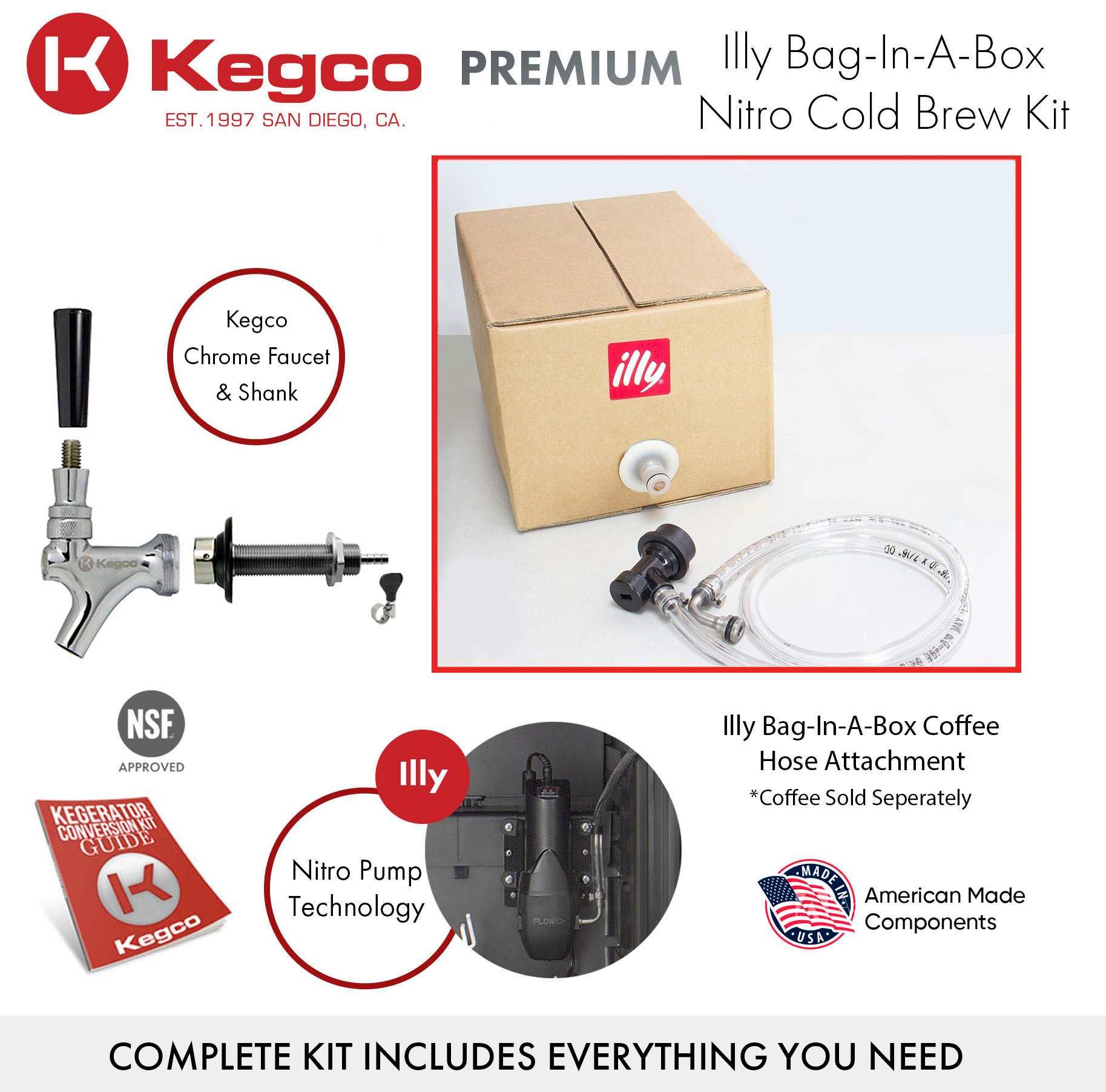 Specifically designed to serve Illy's innovative Illy-Bag-In-A-Box Cold Brew Coffee, which is premium gourmet coffee perfectly packaged in a disposable bag-in-a-box that can be easily installed into the Kegco dispense system. Easier to install than a keg, this cold brew dispense system is an essential from offices to restaurants.