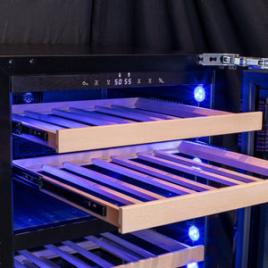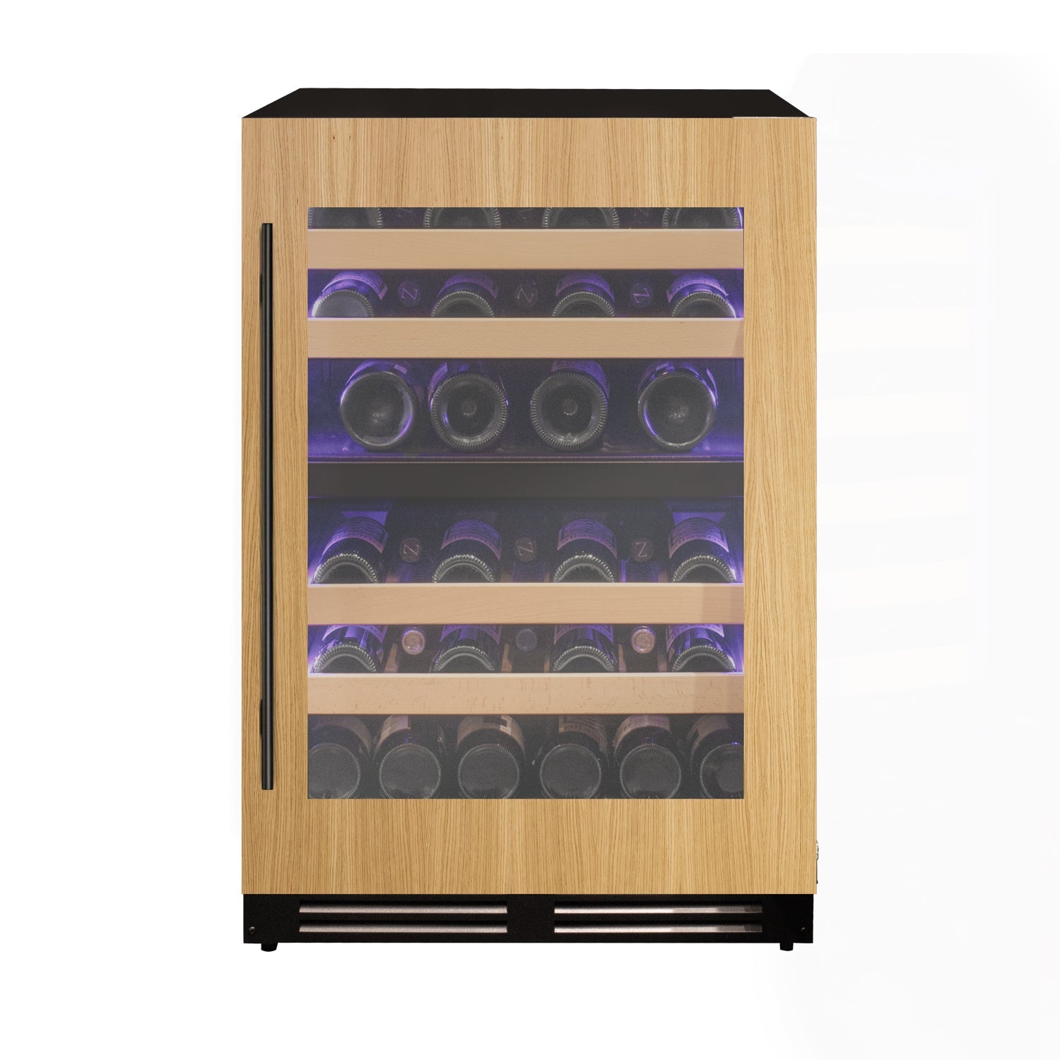 The Allavino VCWR-24PRD-2R Dual Zone Panel Ready Wine Refrigerator stores up to 43 wine bottles of various sizes, and can be customized and built-in to match your cabinetry for seamless wine storage. Protect and preserve your wine collection with the latest innovation in wine storage technology by Allavino. Precisely set your desired temperature with the easy-to-use digital control panel. Allavino's wine racking technology is designed to hold your bottles with vibration-reduction technology to protect aging wines. This unique shelving design allows for ultimate flexibility and versatility when it comes to storing a variety of bottle sizes and shapes. Easy gliding shelves allow for 90% easy access to your collection without disrupting the delicate wine maturation process.