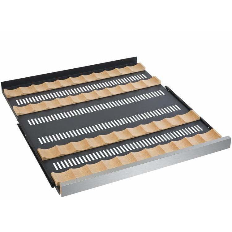 Allavino is at the leading edge of shelf design, incorporating revolutionary metal shelves that are strong enough to hold bottles without sagging, yet thin enough to maximize the available space in the cabinet for wine storage. Wood slats refine each shelf and gently cradle each bottle to prevent harmful vibration from affecting your wine. Each shelf is finished with a stylish wooden front to match the door frame. Each of the shelves glide out smoothly on ball bearing tracks, so every bottle is easily accessible.