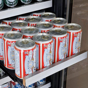 Each of Allavino's state-of-the-art FlexCount shelves glides out smoothly on ball-bearing tracks for easy access to any bottle or can.