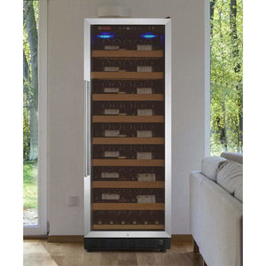The Allavino Vite II YHWR115-1SR20 Wine Refrigerator with Tru-Vino Temperature Control Technology is a stylish freestanding unit that can hold up to 115 bottles. Protect and preserve your wine collection with the latest innovation in wine storage technology by Allavino. Easily set your desired temperature with the easy-to-use digital control panel and trust in Tru-Vino Temperature Control Technology to protect your collection through consistent temperature maintenance. This wine refrigerator features sturdy hardwood shelves that can be easily adjusted to fit the needs of your collection. The smooth gliding shelves allow for convenient access to every bottle without disrupting the delicate wine maturation process.