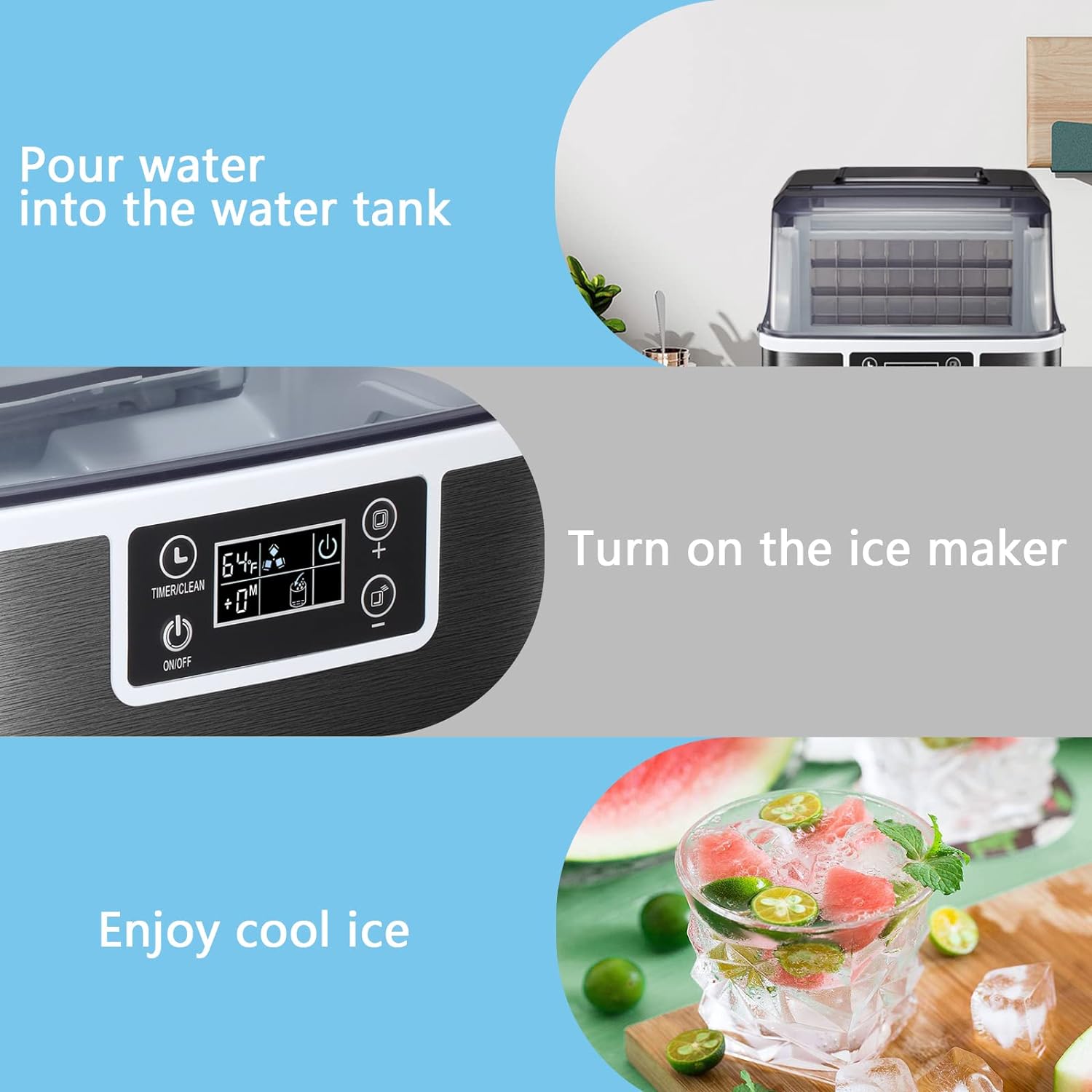Antarctic Star Countertop Ice Maker Machine ,53lbs Square Ice Cubes in 24H,24 Ice Cubes Ready in 8 Mins, Self-Cleaning Ice Scoop and Basket for Home Kitchen Office Bar Party Black