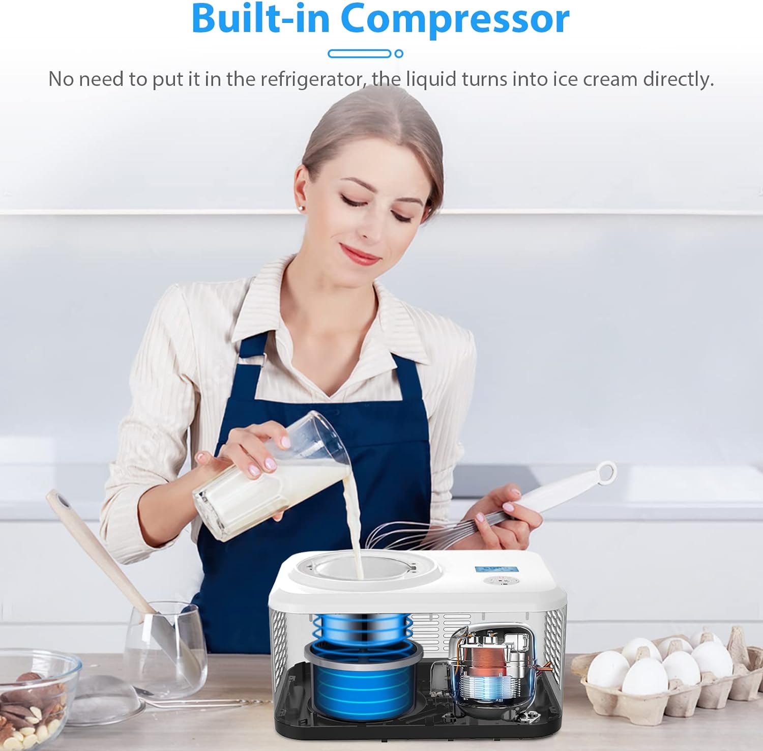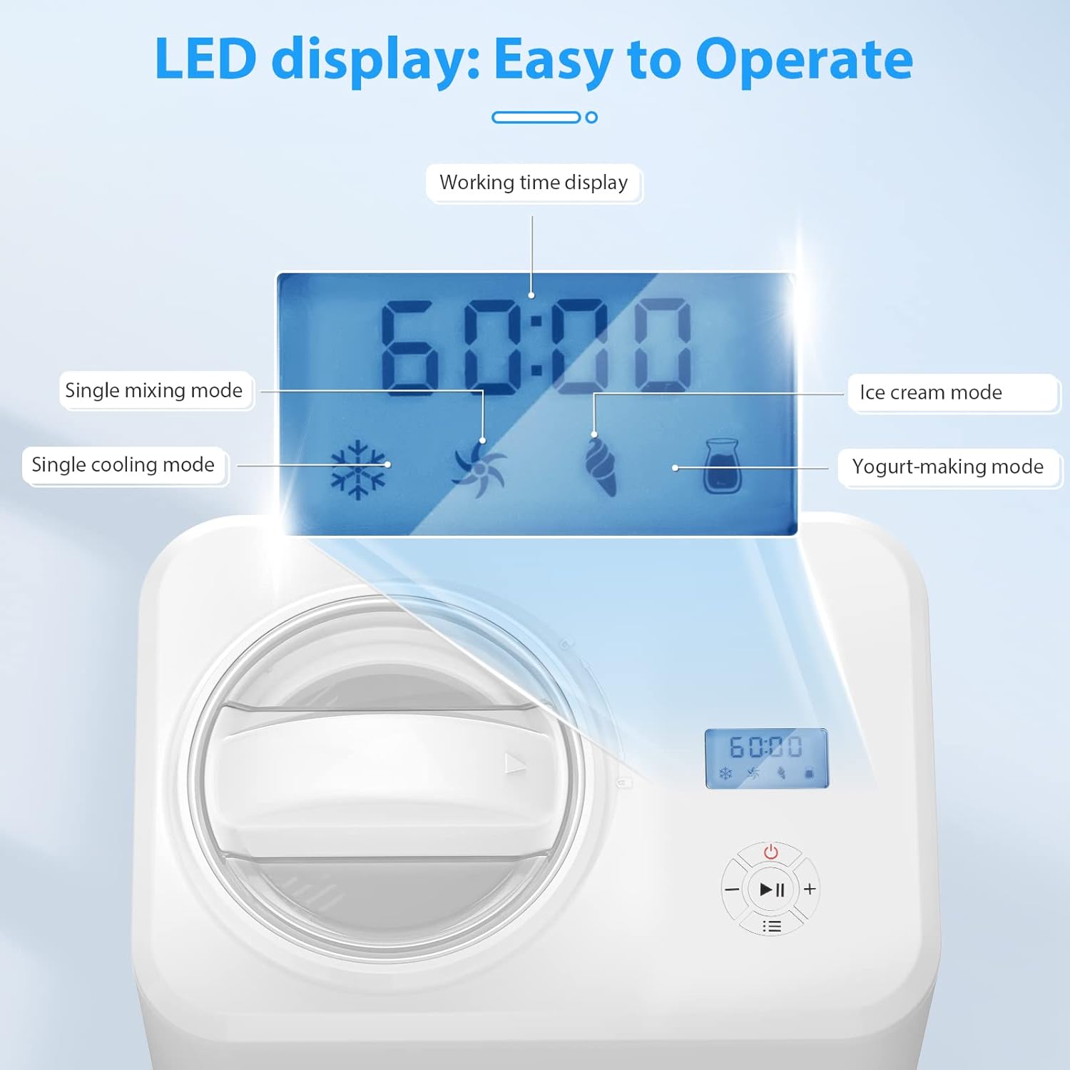 Antarctic Star Electric Ice Cream Maker with Compressor, Homemade Ice Cream Maker for Kids, with LCD Display, 4 Modes for Gelato, Frozen Yogurt, Sorbet