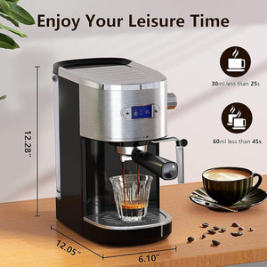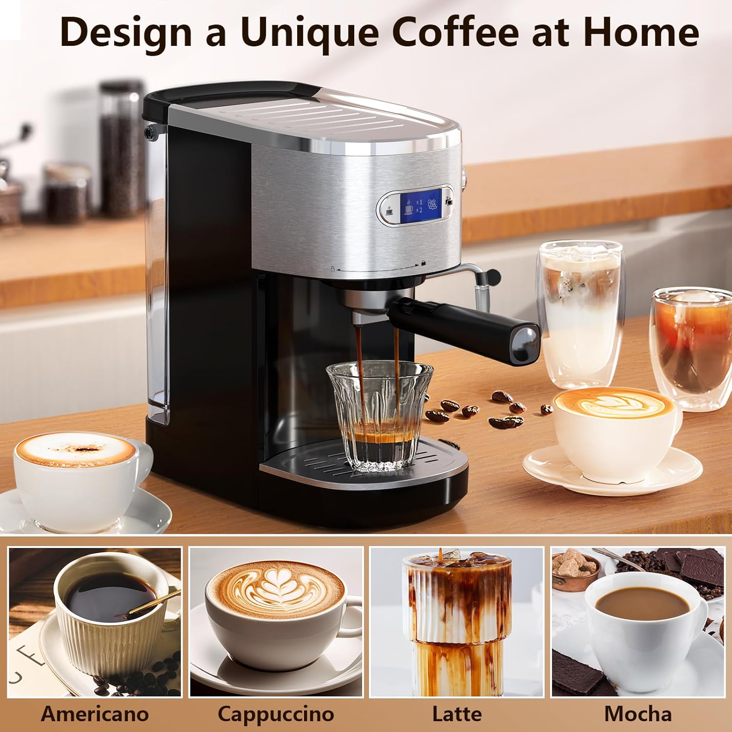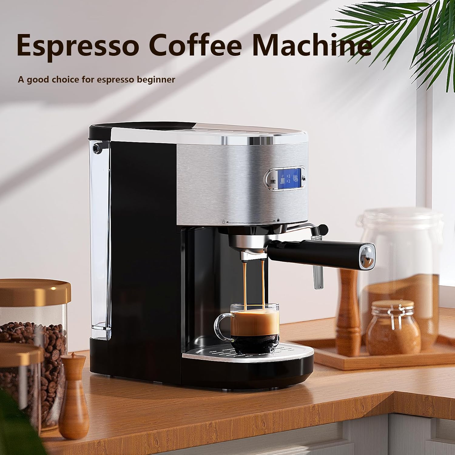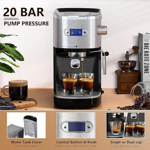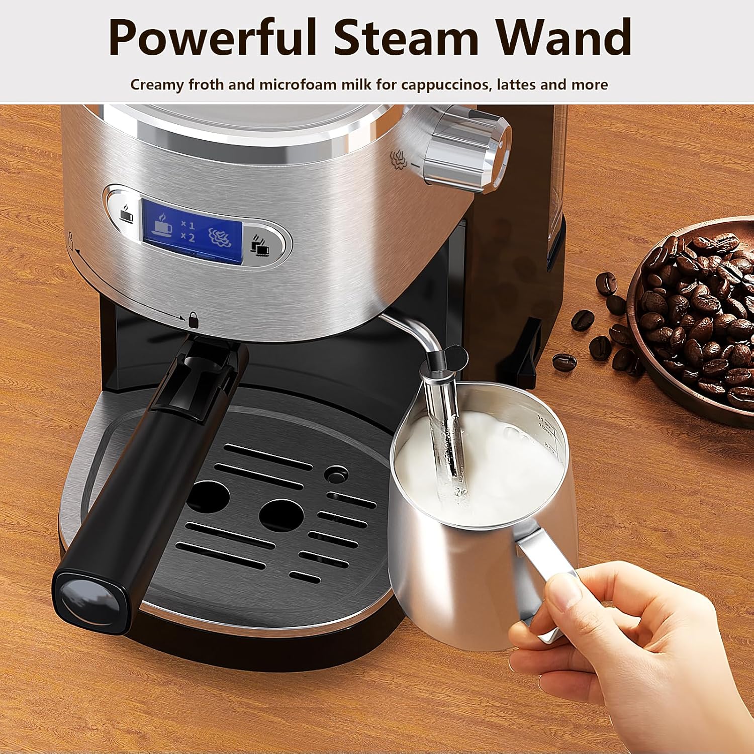 Antarctic Star Espresso Machine 20 Bar, Semi-Automatic Coffee Machine for Cappuccino & Latte with Milk Frother Steam Wand,LCD display,45 oz Removable Water Tank,NTC Digital Temp Control,Black