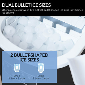 The Whynter IMC-270MB Portable Ice Maker is a highly compact and affordable unit designed for space constrained use in your kitchen, home bar or office. In addition to quickly and efficiently making perfectly bullet-shaped ice cubes, the Whynter IMC-270MB Compact Portable Ice Maker can produce up to 27 pounds of ice per day. You can select between 2 sizes of ice bullets depending on your preferences. This portable ice maker does not need direct plumbing. Simply fill the 2.2 liter reservoir with water, choose your ice size and watch the Whynter IMC-270MB Compact Portable Ice Maker make your first batch in as little as 6 – 9 minutes.
